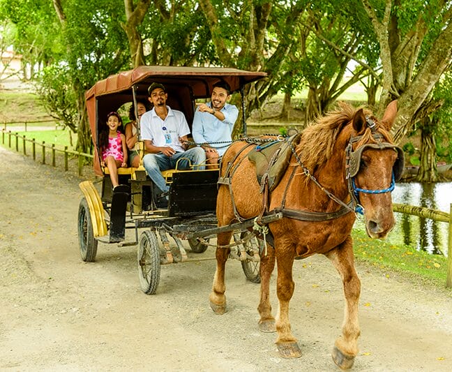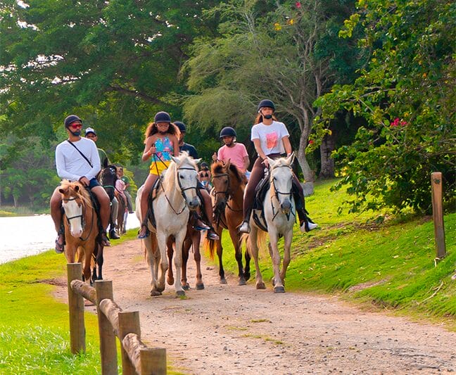 Sinta a liberdade de explorar a Reserva em um passeio a cavalo que combina natureza, tranquilidade e emoção. Essa experiência única permite uma conexão especial com o ambiente ao seu redor, proporcionando momentos inesquecíveis. O passeio tem duração média de 10 minutos, com a opção de participar desacompanhado para maiores de 18 anos, ou com autorização para menores.